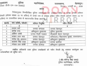 गृह अनुभाग-1, उत्तराखण्ड शासन द्वारा जारी स्थानांतरण/तैनाती आदेश में कई वरिष्ठ अधिकारियों की जिम्मेदारियों में बदलाव किया गया है।